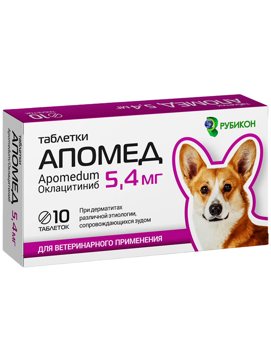 В одной таблетке Апомед 3,6 мг, Апомед 5,4 мг и Апомед 16 мг содержится соответственно 3,6 мг, 5,4 мг и 16 мг оклацитиниба (в форме оклацитиниба малеата).