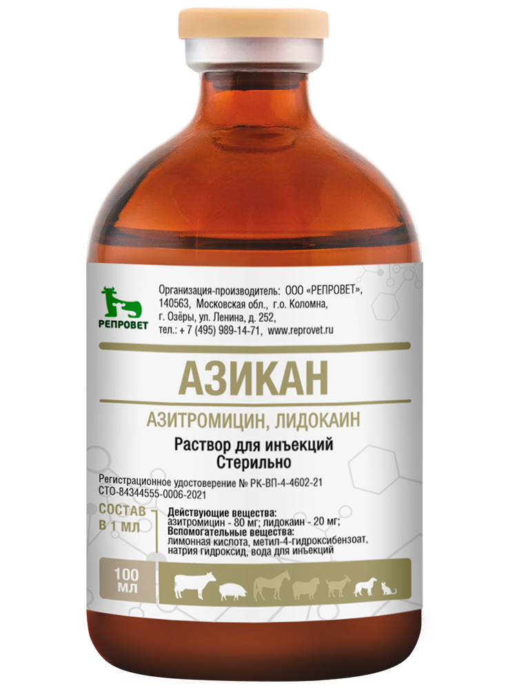 Азикан - высокоэффективный безопасный антибиотик для лечения респираторных, желудочно-кишечных и других инфекций животных.