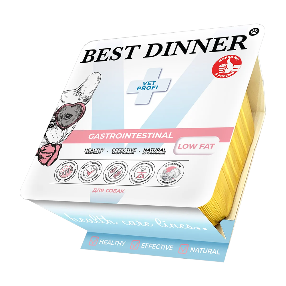 Влажный диетический полнорационный консервированный корм для собак при нарушениях пищеварения, всасывания в кишечнике и экзокринной недостаточности поджелудочной железы.
