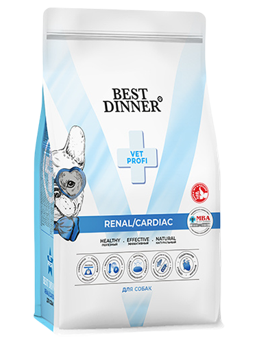 Полнорационный диетический сухой корм при острой или хронической болезни почек и заболеваниях сердца у взрослых собак всех пород.