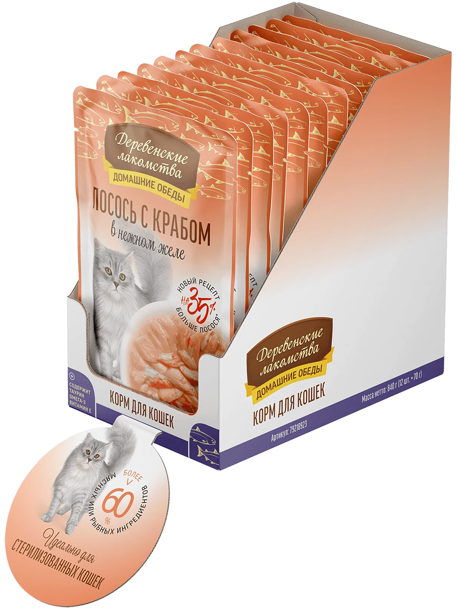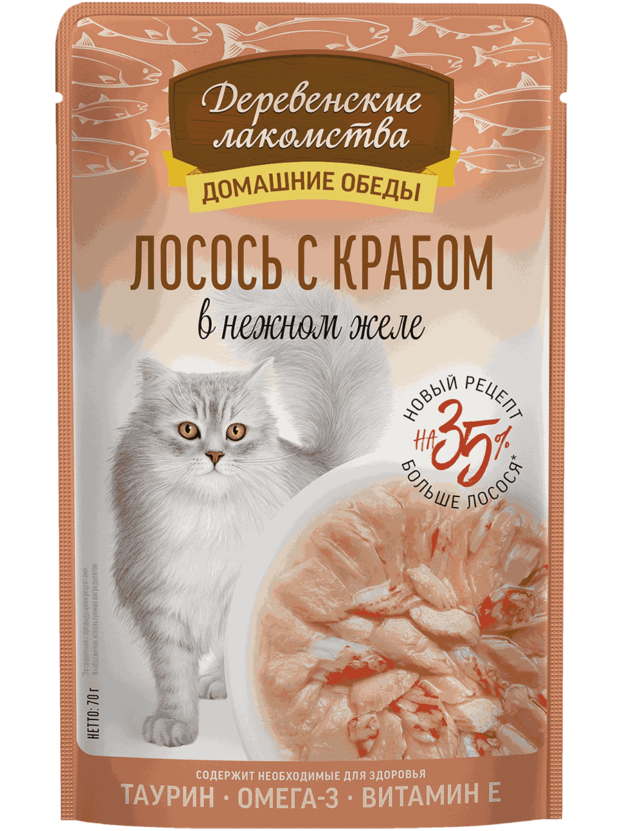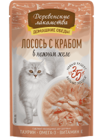 Консервированный влажный корм для кошек серии "Деревенские лакомства - Домашние обеды" - изысканный морской деликатес, созданный с любовью и заботой о вашем пушистом друге. Угощение не только порадует вашего кота, но и внесет разнообразие в его рацион. Бережно отобранные ингредиенты, без добавления консервантов и красителей, делают это блюдо безопасным и приятным для вашего любимца. Легкая текстура желе облегчает процесс потребления, делая этот продукт идеальным даже для самых привередливых питомцев.