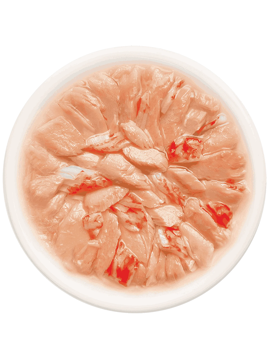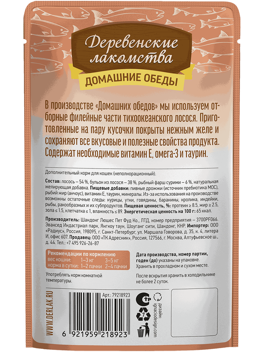 Состав: лосось 54 %, рыбный фарш сурими 6 %, бульон из лосося 38 %, натуральная желирующая добавка.