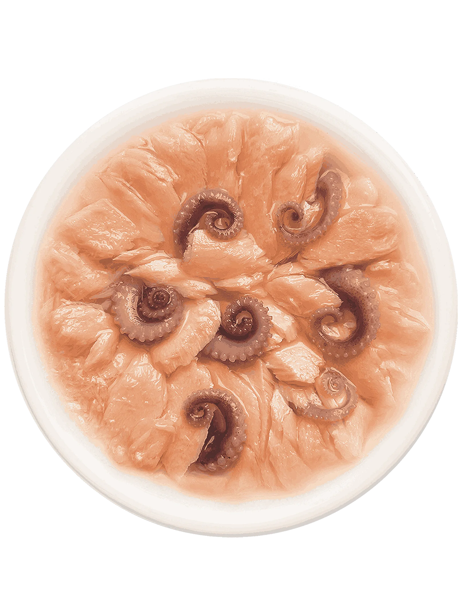 Состав: лосось 54 %, осьминог 6 %, бульон из лосося 38 %, натуральная желирующая добавка.