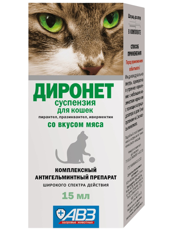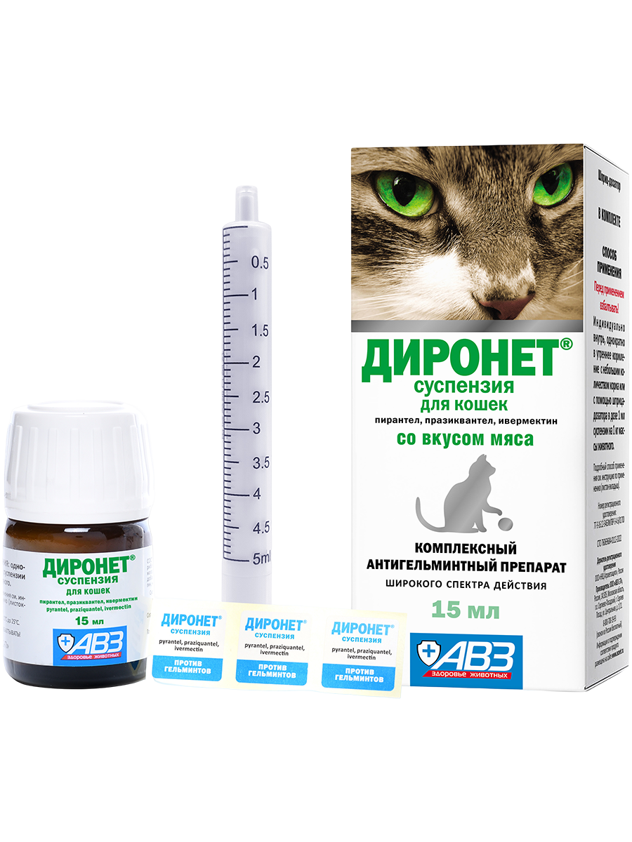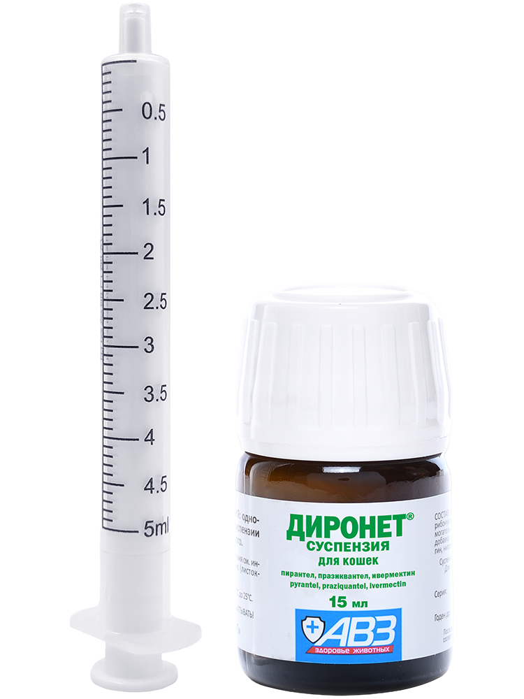 «Диронет» суспензия – полимерный флакон 15 мл со шприцем-дозатором в картонной коробке.