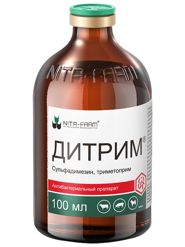 Дитрим назначают КРС, свиньям, лошадям и собакам для лечения бактериальных инфекций, органов дыхания, желудочно-кишечного тракта и мочеполовой системы, возбудители которых чувствительны к сульфадимезину и триметоприму.