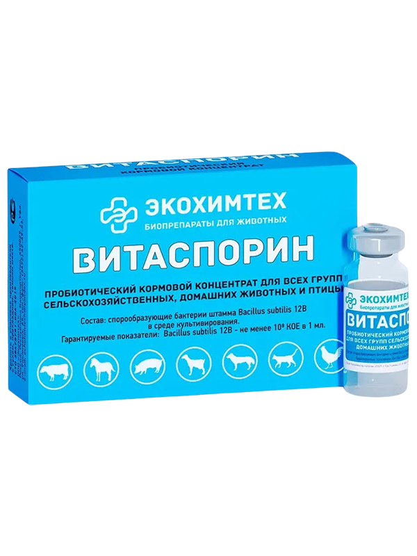 Споровые бактерии, входящие в состав Витаспорина помогают расщеплению питательных компонентов кормов, обогащают корма витаминами и аминокислотами, продуцируя антибиотики полипептидной природы, гидролитические ферменты (протеазы, амилазы, гемицилцеллюлазы и др.), витамины, аминокислоты и другие биологически активные вещества.