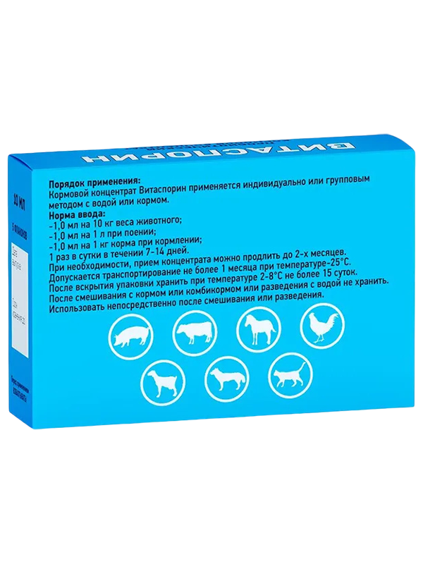 Устойчивость Витаспорина ко многим антибиотикам: (мономицину, гентамицину, полимиксину, левомецину, стрептомицину и др.) позволяет применять кормовую добавку в период лечения животных и минимизировать отрицательные последствия антибиотикотерапии.