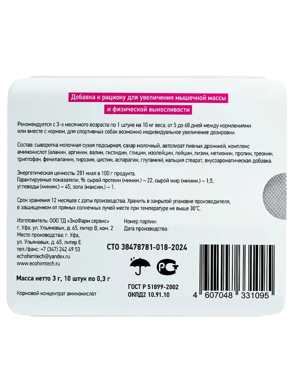 Щенкам и котятам с 3-х месяцев — для профилактики и восполнения белковой недостаточности и нарушений обмена веществ.