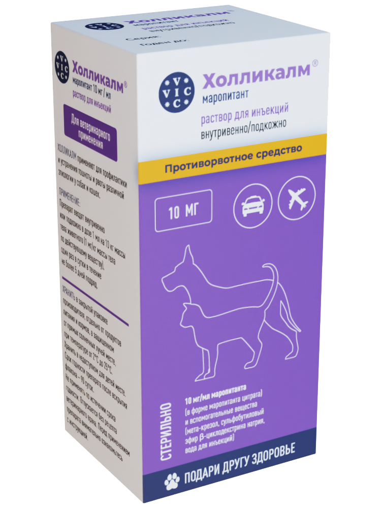 Для предотвращения рвоты различного генеза у собак и кошек.