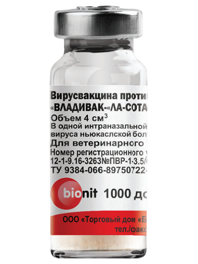 Изготовлена из вируссодержащей экстраэмбриональной жидкости СПФ-куриных эмбрионов, инфицированных вирусом болезни Ньюкасла.По внешнему виду представляет собой сухую пористую белую массу с однородной и мелкозернистой структурой, хорошо растворимую в воде без образования хлопьев и осадка. Выпускается в стеклянных ампулах и флаконах, содержащих от 50 до 6000 назальных доз, которые упаковывают в пластиковые коробки.