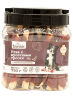 Соблазнительный дуэт утки и трески: премиум-белок двойного действия! Стимулирует жевание - здоровье пасти и свежее дыхание!