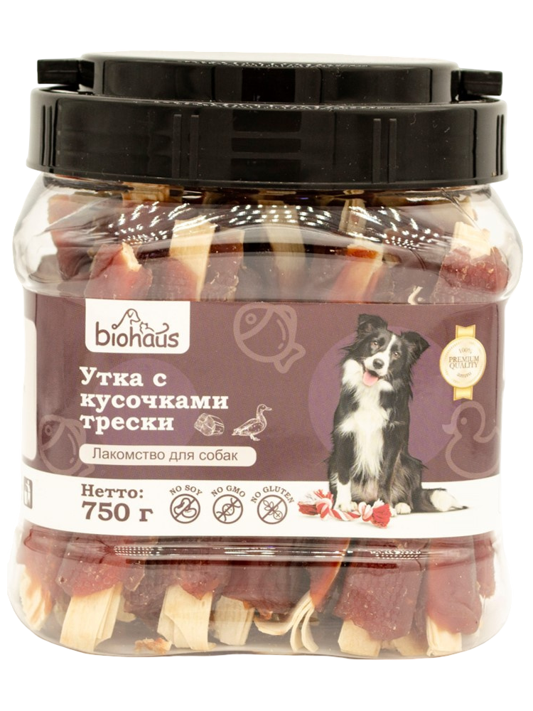 Состав: утка, треска, арахисовый белок, сорбит, соль, глицерин, тапиоковый крахмал.