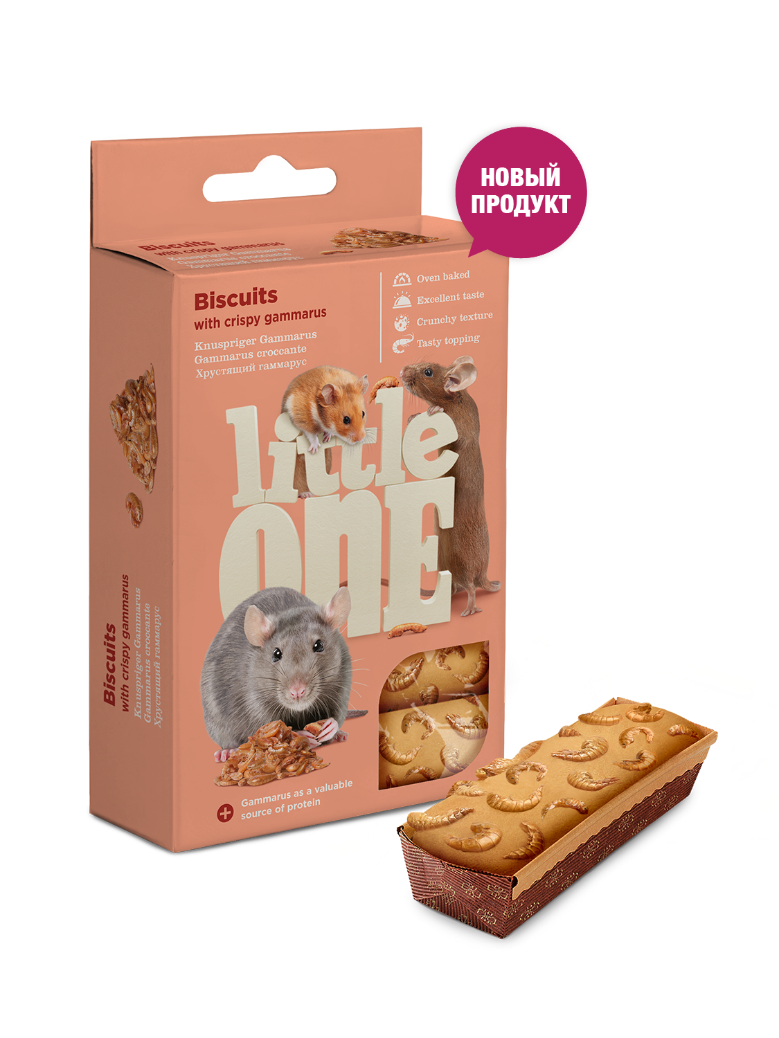 Дополнительный корм для хомяков, крыс, мышей и песчанок. Бисквиты Little One — это вкусная и полезная добавка к основному рациону для всеядных грызунов. Морковь и шпинат, содержащиеся в бисквитах, делают лакомство особенно вкусным.