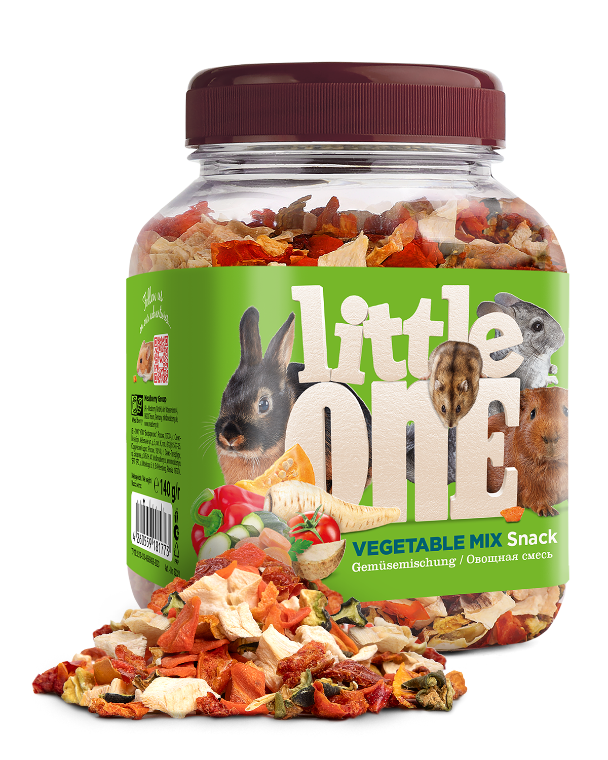 Лакомство «Овощная смесь» от Little One — это полезная и вкусная добавка к основному рациону грызунов и кроликов. Смесь, состоящая из пяти видов сушеных овощей, поможет разнообразить питание зверьков, а также послужит источником витаминов и других полезных веществ.