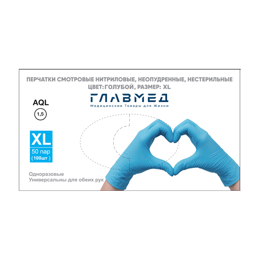 Перчатки смотровые нитриловые, неопудренные, нестерильные, цвет: голубой, размер: XL - предназначены для одноразового использования при проведении медицинских исследований, диагностических и терапевтических процедур с целью защиты пациента и исследователя от взаимного заражения, а также для использования при работе с зараженными медицинскими материалами.