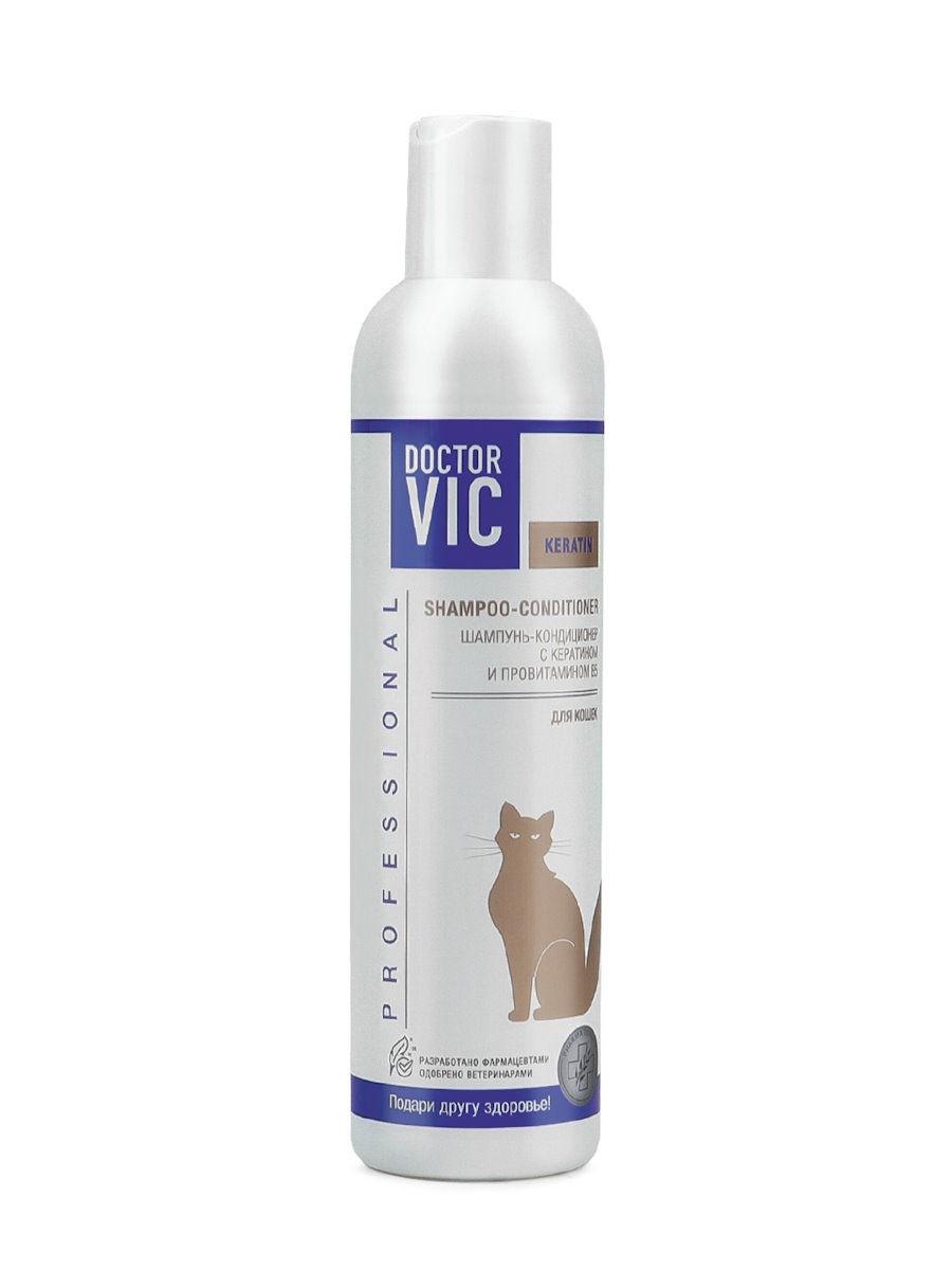 Серия DOCTOR VIC KERATIN направлена на улучшение состояния кожного покрова и восстановление структуры шерсти кошки.