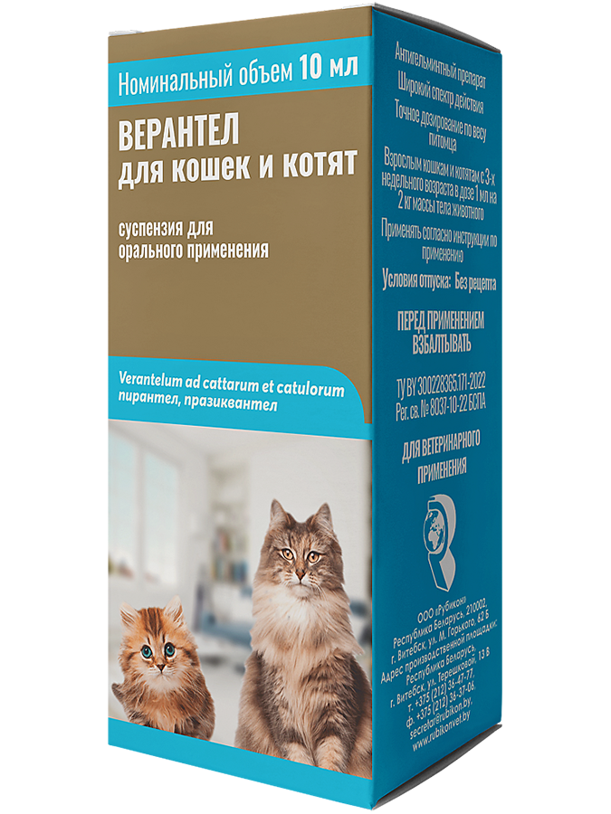 Верантел для кошек и котят — комплексный антигельминтный препарат широкого спектра действия.