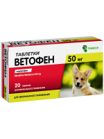 Препарат содержит в одной таблетке в качестве действующего вещества 50 мг карпрофена; вспомогательные вещества: лактозы моногидрат, целлюлоза микрокристаллическая, крахмал кукурузный, дрожжи неактивные, поливинилпирролидон низкомолекулярный, кросповидон, ароматизатор, аспасвит Ц2ОО, кальция стеарат, тальк