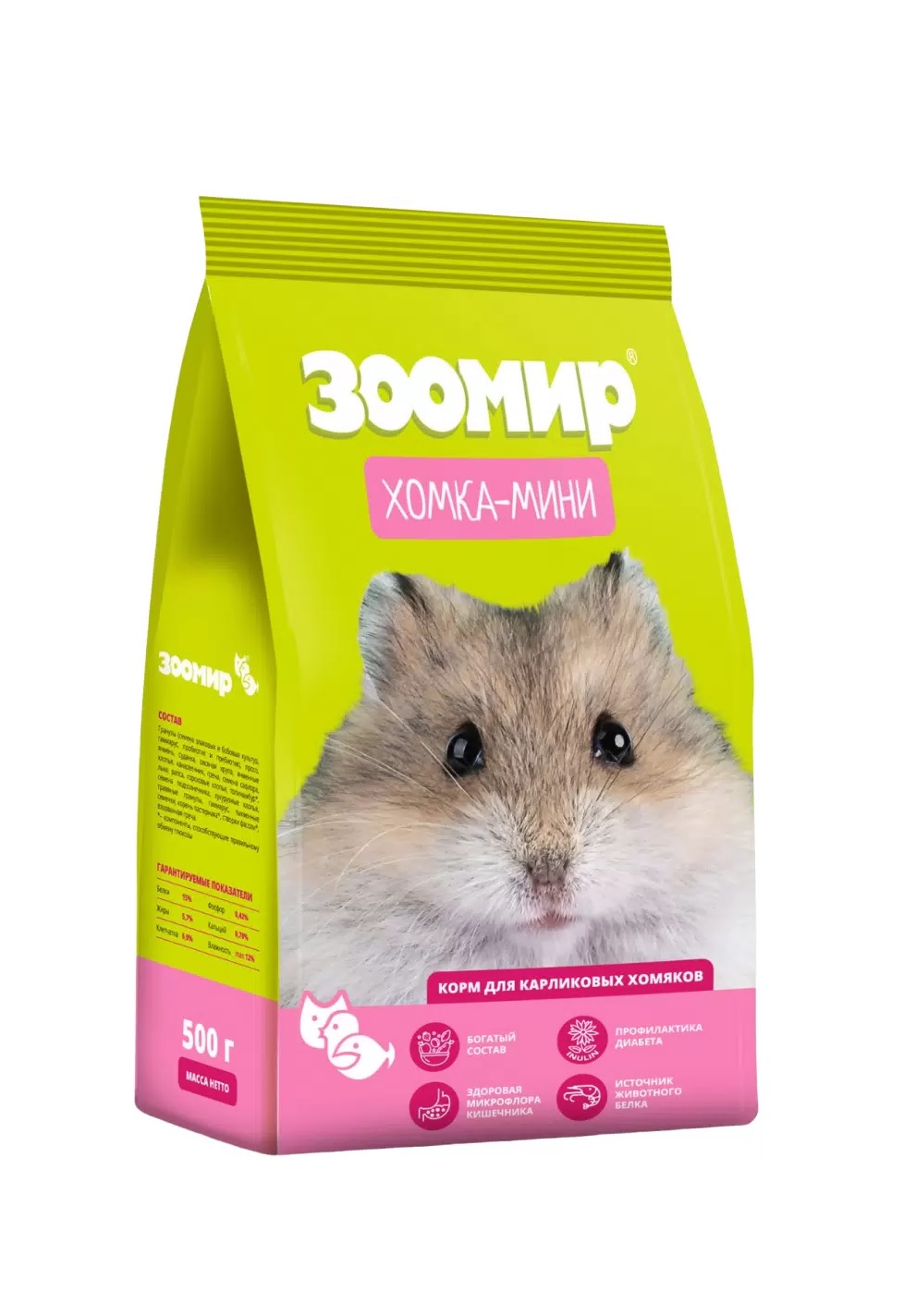Не забывайте, что карликовым хомячкам нужны и зеленые сочные корма (укроп, огурец, листья одуванчика, кабачок, брокколи и др.), а также корма, богатые животным белком (желток яйца, кормовые насекомые, обезжиренный творог, отварное куриное мясо и др.).
